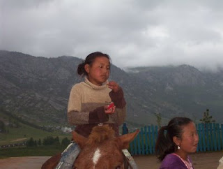 An interesting incident occured as we were getting ready to set out. The children in the family that owned the horses had been riding around the area while we were eating lunch and afterward their father called them over to turn over their ponies to Ed and Tom. The girl whose pony Tom got took one look at the three of us and turned to her father and begged him to let Tom (the least heavy of the three of us) be the one to ride HER pony. It was one of those moments where the meaning came through crystal clear even though we couldn't understand the language. No translation necessary!